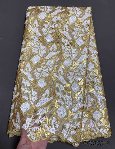 アフリカナイジェリアレース生地スパンコール5ヤード斬新デザインゴールデンサプライヤー