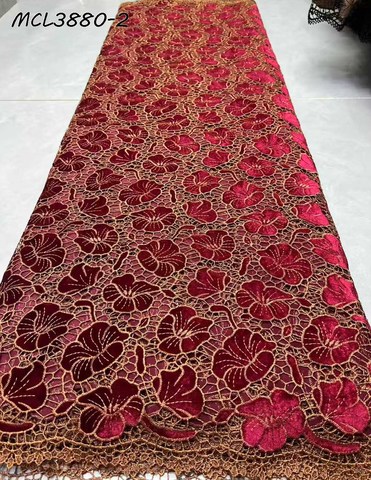 メーカーアフリカ刺繍フレンチビーズワインベルベットストーン葉レース生地重い手作り3Dフラワーレース
